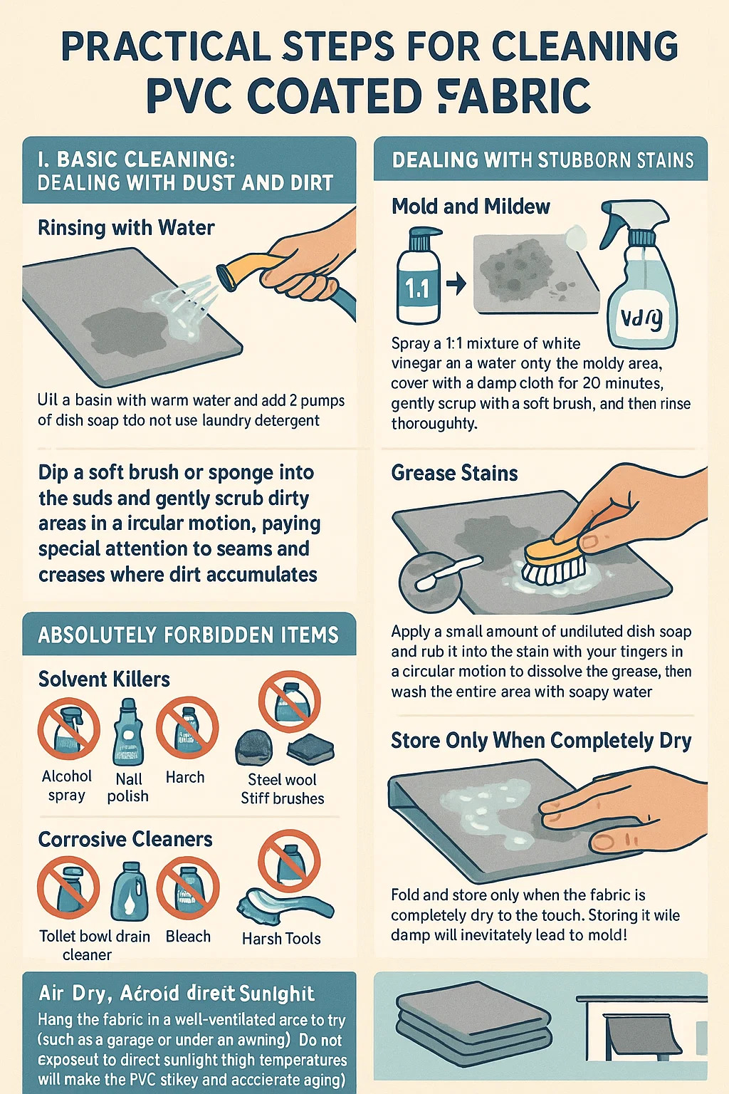 Tu sú praktické kroky na čistenie Tkanina potiahnutá PVC :