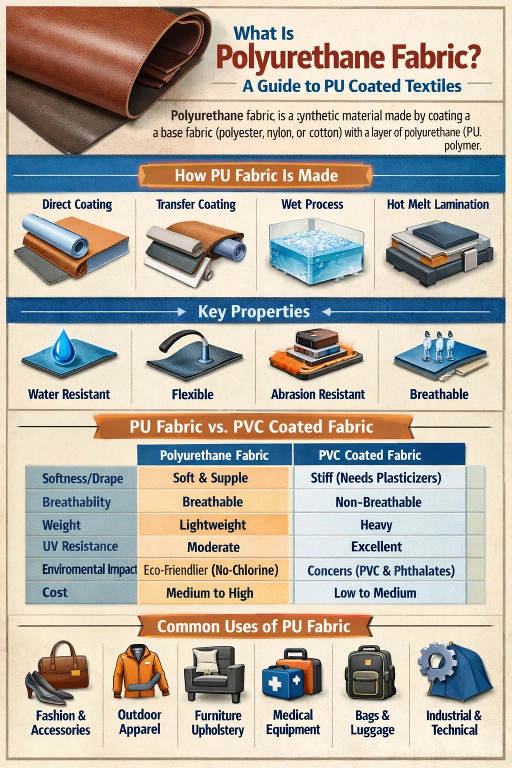 Polyuretánová tkanina vs Tkaniny potiahnuté PVC — Podrobné porovnanie